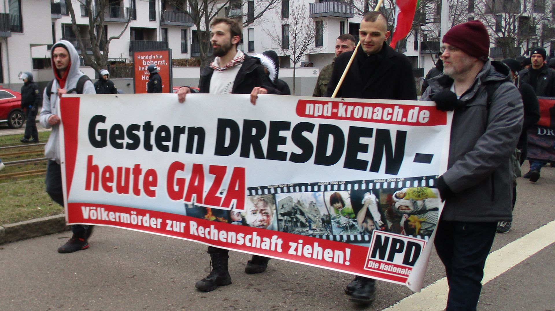 Die NPD Kronach war mit einer starken Delegation und einem eigenen Banner vertreten, das nicht nur die historischen westlichen Kriegsverbrechen gegen die deutsche Zivilbevölkerung anprangerte, sondern auch die aktuellen Greueltaten in Palästina. Zudem wurde mit einer Fahne Solidarität mit dem Iran bekundet, einem der wenigen freien Staaten, die heute noch Widerstand gegen die westlichen Globalisten und die internationale Hochfinanz leisten.